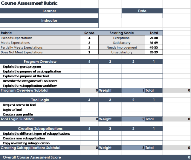Below is a sample evaluation rubric to evaluate online courses.